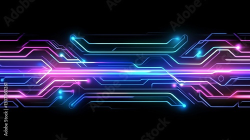 Abstract neon circuits forming complex patterns, glowing and vibrant, futuristic and powerful, highly detailed and sleek, dynamic and energetic