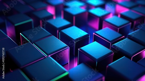 Abstract neon futuristic digital wallpaper with neon cubes pattern. depicting: future technology, cloud storage, cyberspace and cybersecurity concepts