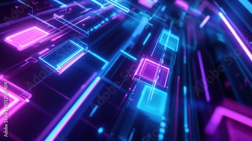 abstract, neon, light, glowing, futuristic, digital, technology, design, three-dimensional, render, graphic, art, geometric, pattern, shape, line, colours, bright, vibrant, blue, pink, purple, magenta, dark, background, wallpaper, modern, minimalism, style, high-coloured, dynamic, energy, illuminated, sparkling, electronic, virtual, science fiction, concept