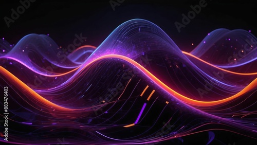 Abstract neon purple and orange digital waves in a futuristic, vibrant composition