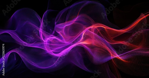 Abstract Neon Wave Pattern Tech Background with Glowing Digital Particles and Fluid Motion