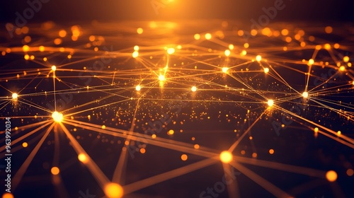 Abstract Network Connection Golden Lines and Glowing Points