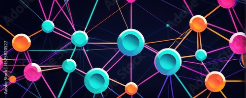 network, node, connection, technology, communication, abstract, digital artwork, sphere, line, dark background, teal, pink, orange, interconnected, geometric, graphic, design, pattern, texture, modern, futuristic, science, datum, information, complex, intricate, web, link, system, structure, visualisation, illustration, concept, abstract background, digital, glowing, neon, colourful, energy, dynamic, creative, artistic