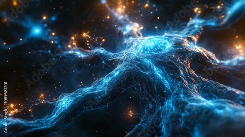 network, nerve cell, neural, digital, art, abstract, science, technology, futuristic, connection, brain, mobile phone, structure, complex, intricate, glowing, bright, blue, orange, dark, background, particle, energy, light, line, point, pattern, design, illustration, graphic, texture, space, cosmos, universe, concept, idea, visual, image, representation, datum, information, system