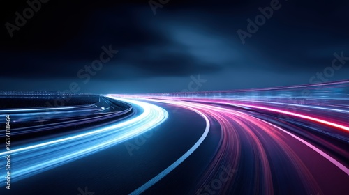 abstract, night, road, light, futuristic, transport, trail, speed, motion, blur, blue, red, transportation, dark, curve, highway, asphalt, drive, travel, modern, technology, connection, communication, energy, dynamic, background, design, graphic, concept, business, innovation, progress, fast, exposure, long, urban, city landscape, neon, traffic, digital