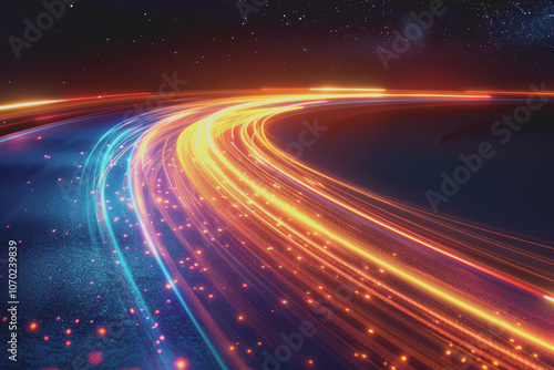 Abstract of vibrant light trails with glowing magic effects.