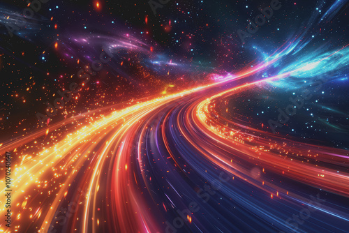 Abstract of vibrant light trails with glowing magic effects.