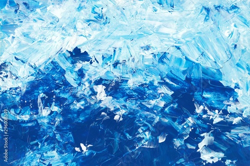 Abstract oil blue and white palette art painting background texture. Ice textured abstraction