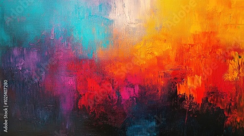 Abstract oil painting with vibrant colors showcasing impressionistic and surreal elements Ideal for wall decor or as a poster Features unique hand drawn textures