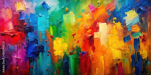 Abstract oil painting with vibrant, thick brush strokes and bold colors, abstract, oil painting