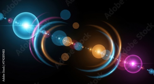 abstract, optical, light, flare, in, cyan, magenta, amber, and, indigo, tone, on, black, background, glowing, semitransparent, sphere, cinematic, bokeh, reflections, holographic, prism, glow, dreamy, photo