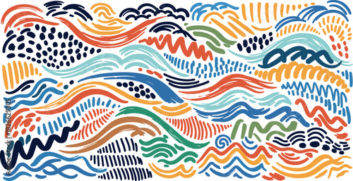 abstract, line, dot, hand-drawn, colourful, pattern, background, texture, white background, blue, orange, green, yellow, brown, navy blue, teal, playful, energetic, dynamic, modern, graphic, simple, clean, artistic, creative, design element, textile design, wallpaper, doodle, vignetting, vibrant, cheerful, irregular, organic, freehand, bold, graphic design, decorative, contemporary
