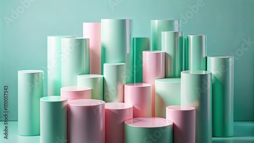 cylinder, pastel, pink, green, mint, display, arrangement, background, composition, abstract, shape, geometric, form, design, product, showcase, presentation, pattern, texture, style, modern, contemporary, vibrant