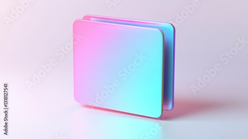 Abstract pastel pink and blue square shape with gradient, glossy surface, and subtle shadow.