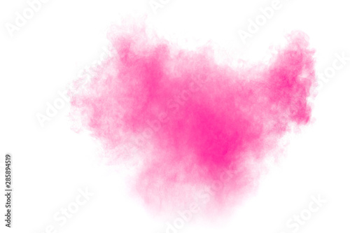 abstract pink dust explosion. abstract pink powder splattered on white background.