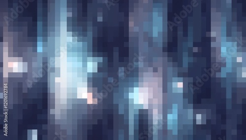 Abstract pixel art: shades of blue and white dynamic textured visual