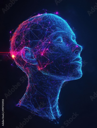 abstract, polygonal, head, outline, dark, mock-up, placeholder, ai, artificial intelligence, concept, three-dimensional, rendering, technology, digital, innovation, geometric, design, graphical, portrait, creative, illustration, network, brain, connection, intelligence, cyber, information, abstracted, surreal, conceptual, visualisation, human, machine, fusion, futuristic, synthetic, virtual, reality, mind, modern, graphic, artistic, science, future