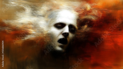Abstract portrait of a screaming face engulfed in fiery, swirling chaos.