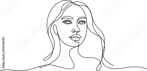 Abstract portrait of romantic woman face. one line art icon drawing vector