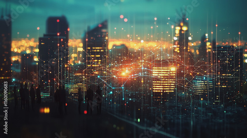 abstract professional business team people innovation connection of line from nail node to node on Smart Innovation city with connection cyber security network reciprocity , networking concept