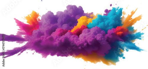 Abstract Rainbow Watercolor Ink Splash Explosion on White Background with Vibrant Brush Texture and Artistic Gradient Flow