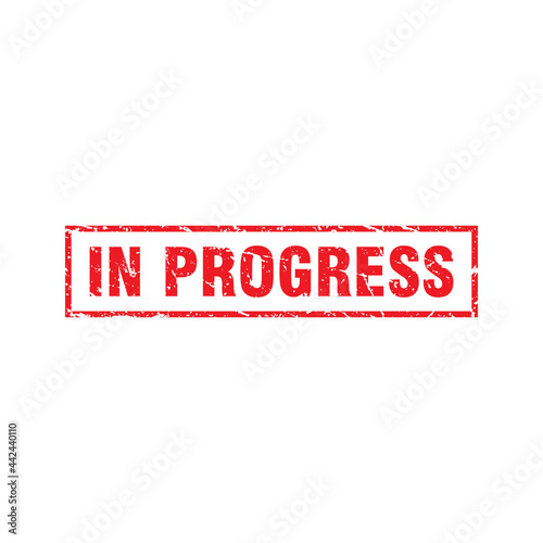 Abstract Red Grungy In Progress Rubber Stamp Sign Illustration Vector, In Progress Text Seal, Mark, Label Design Template