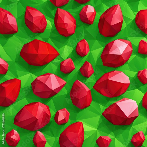 Abstract red polygonal eggs on a green polygonal background. Easter concept.