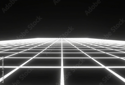 Abstract Retro Future: 3D Black & White Grid with Laser Neon Elements from the 80s-90s - Perfect for high-energy templates and futuristic backgrounds.