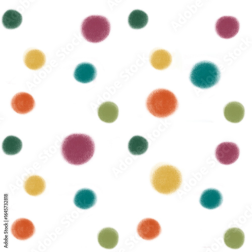Abstract seamless colorful polka dots on a light background, hand drawn illustration