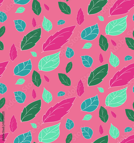 Abstract seamless leaves of a pink pattern, vector