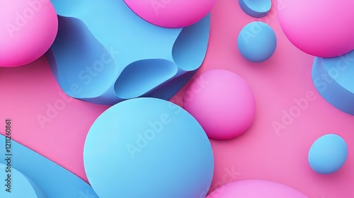 abstract, shape, pink, blue, pastel, background, design, texture, three-dimensional, render, illustration, modern, art, creative, geometric, colours, vibrant, smooth, round, sphere, circle, curve, organic, fluid, gradient, minimal, style, contemporary, visual, graphic