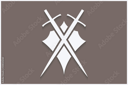 Abstract shield and sword illustration.