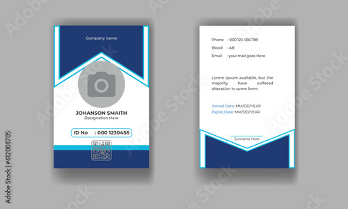 Abstract Simple Geometric Blue Id Card Design, Professional Identity Card Template Vector for Employee and Others