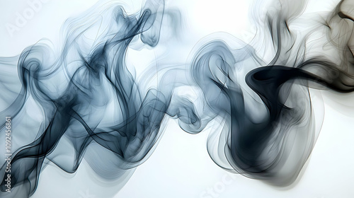 Abstract Smoke: Dark Gray and Black Wisps Flowing Gracefully on White Background, Creating an Elegant and Serene Digital Art Illustration.