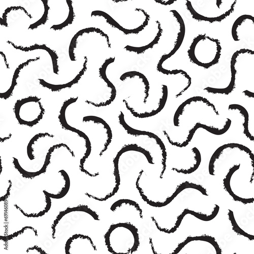 Abstract swirl lines and dots seamless pattern. Trendy textured print with swirl lines. Artistic stylish vector seamless background design. Chaotic ink brush ripple stamp decorative texture.