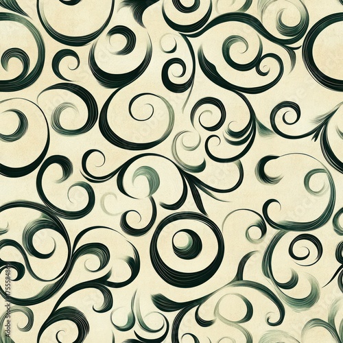 Abstract swirl seamless pattern in beige tones, retro circular design for backgrounds.