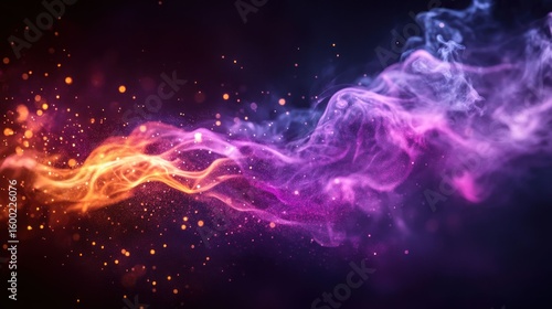 abstract, smoke, swirling, colours, vibrant, glowing, particle, energy, flow, motion, dynamic, fluid, purple, pink, orange, red, dark, black, background, texture, design, art, graphic, digital, effect, blur, light, glow, spark, glistering, bokeh, speck, movement, fantasy, mystic, dreamlike, intricate, modern, artistic, creative, visual, colourful, intriguing, striking, illustration, aesthetic