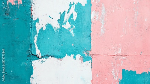 Abstract Teal Pink White Wall Texture Background Grunge Distressed Paint Urban Modern Design Artistic Creative Element Stylish Vivid Color Palette