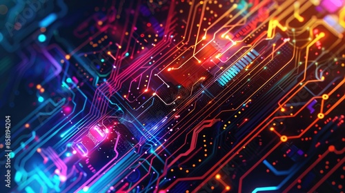 Abstract technology background showcasing intricate circuits and vibrant colors, celebrating the beauty of modern technology