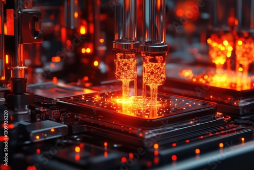 Abstract Technology: Glowing Orange Liquid Filling Circuit Board