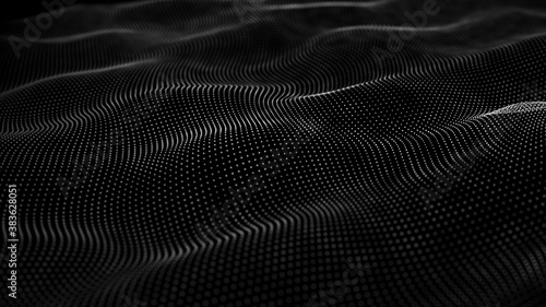 Abstract technology stream background. Digital dynamic wave of dots. Network connection structure. 3D rendering.
