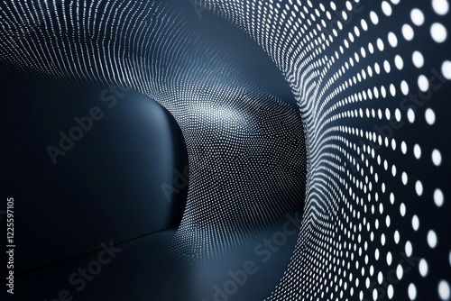 Abstract tunnel with illuminated dots creating a dynamic visual effect in a dark environment