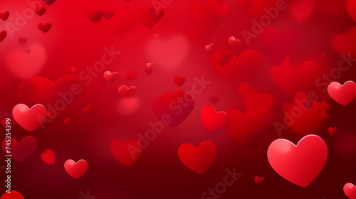 Abstract Valentine's Day background with red hearts and blurred bokeh lights
