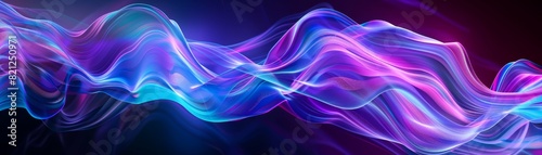 Abstract vibrant colorful wave pattern with glowing neon lights. Dynamic flow of purple, blue, and pink hues in futuristic digital art.