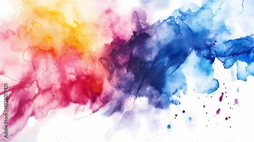Abstract watercolor background with vibrant colors and white space. Ink Blot. Illustration