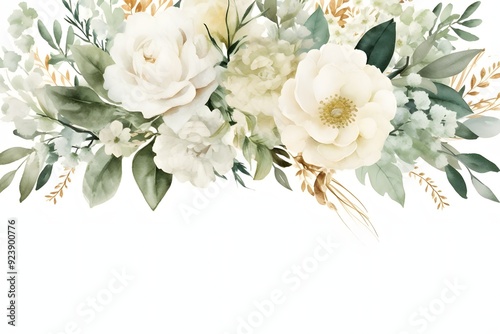 Abstract watercolor background with white leaves flowers isolated on white background