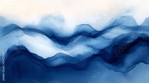 Abstract Watercolor Ocean Waves Texture: Fluid Artistic Expression with Serene Blue and Ethereal Gradient