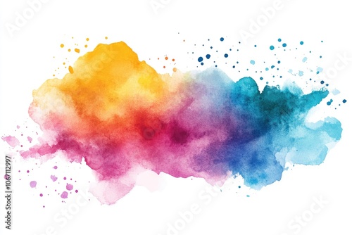 Abstract Watercolor Paint Splashes in Vibrant Yellow, Red, Pink, and Blue Colors