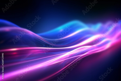 Abstract Wave Flow: A captivating abstract design featuring vibrant blue and pink glowing waves, exuding an ethereal and dynamic energy, ideal for futuristic or technology-focused backgrounds.