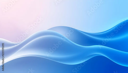Abstract waves, smooth curves, blue gradient, soft lighting, ethereal atmosphere, flowing forms, digital art, minimalist design, tranquil mood, pastel background, gentle transitions, fluid motion, ser